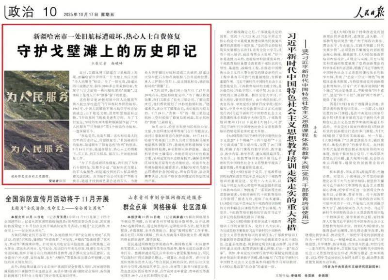 这些标语是20世纪原中国人民解放军第八航空学校进行飞行训练时参照的航标。1967年,中国人民解放军第八航空学校在哈密成立,由于地处戈壁,没有明显地面标志物,飞行训练时飞机极易迷失方向。为了飞行安全,学校师生用木棍和铁锹制作出了“为人民服务”“只争朝夕”等5个标语作为航标,一直保留至今。