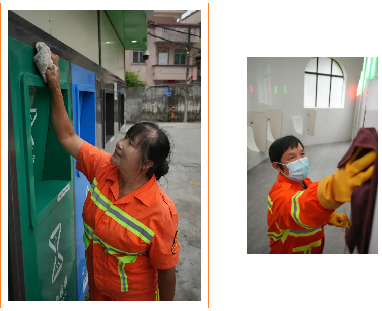 从定点收垃圾的挥汗如雨,到河面保洁的孤影前行;从驾驶现代化清扫车的专注,到守护公厕一尘不染的执着……