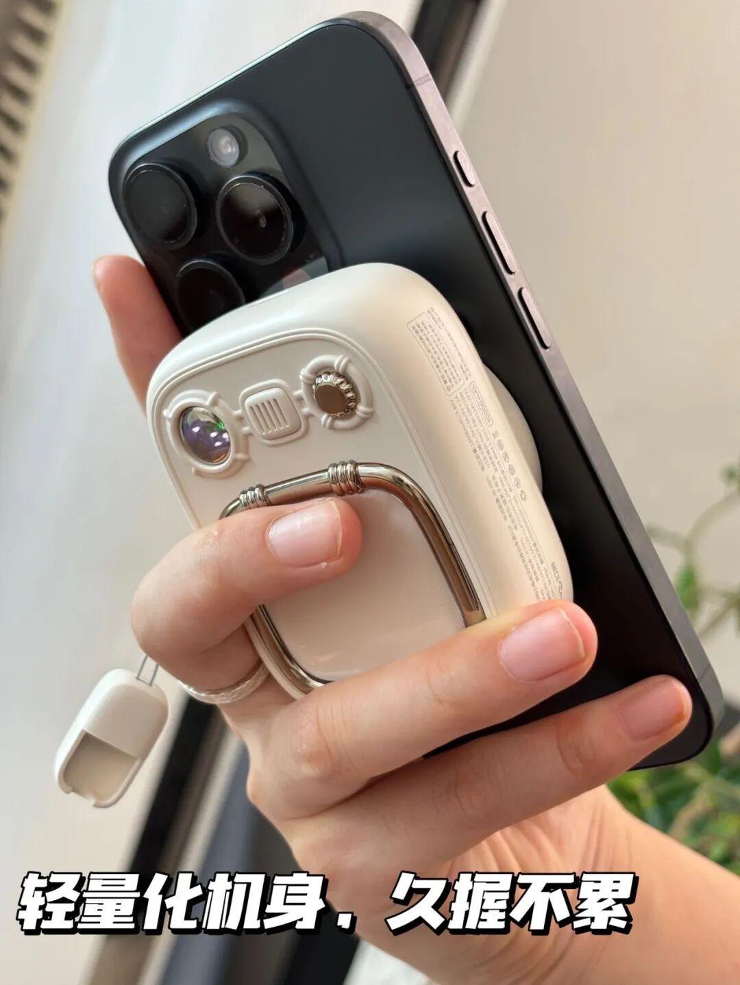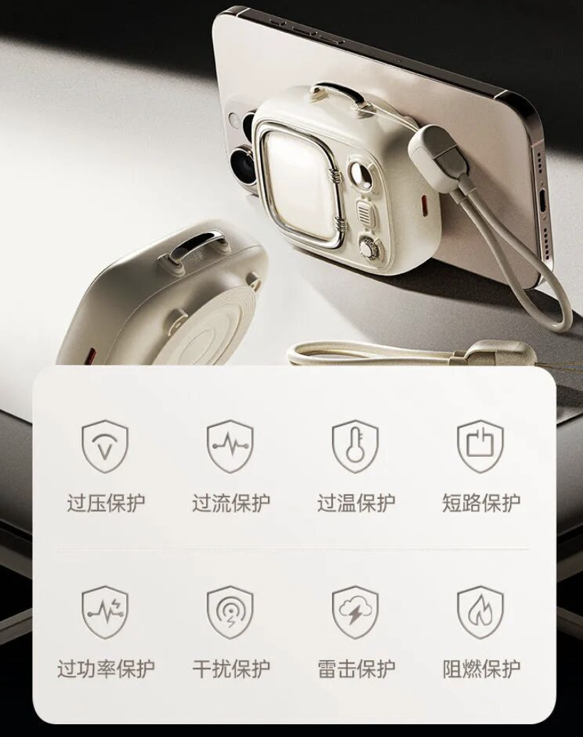 复古颜值+小巧便携,磁吸无线充+有线快充+手机支架三合一万能充电宝